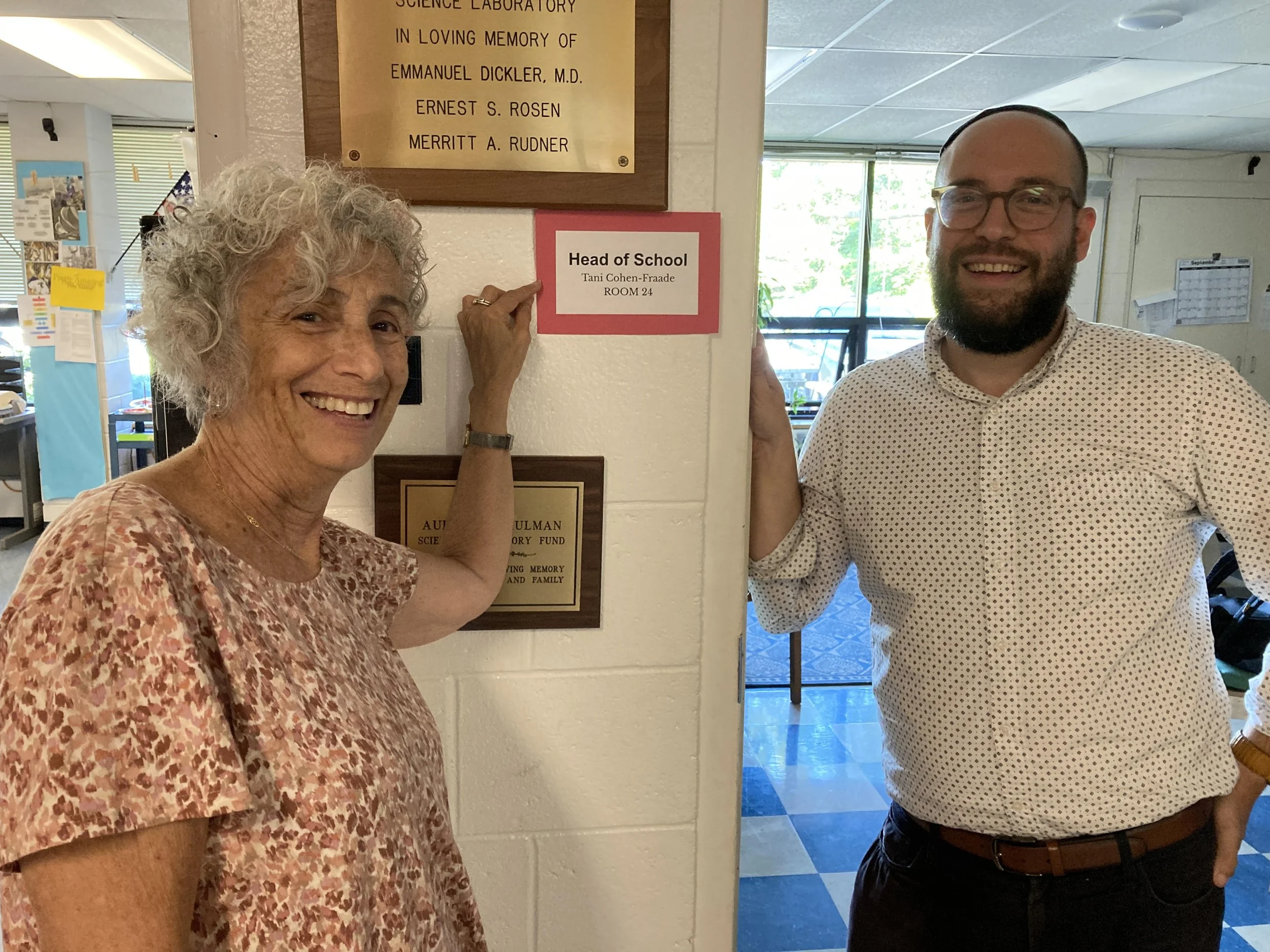 Pictured here as Head of School in the 80s and years later with our current Head of School, Tani!